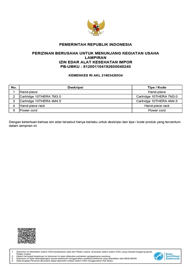 | Title | 10THERA Indonesia(MoH) Certificate ( No. 21603420534) | ||